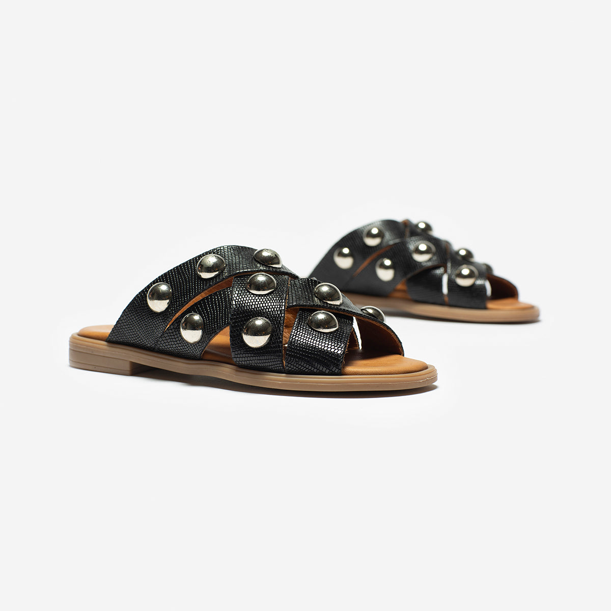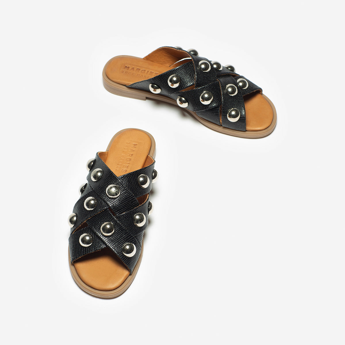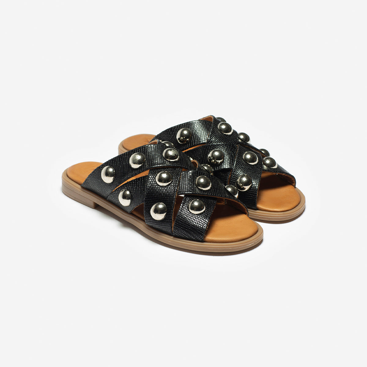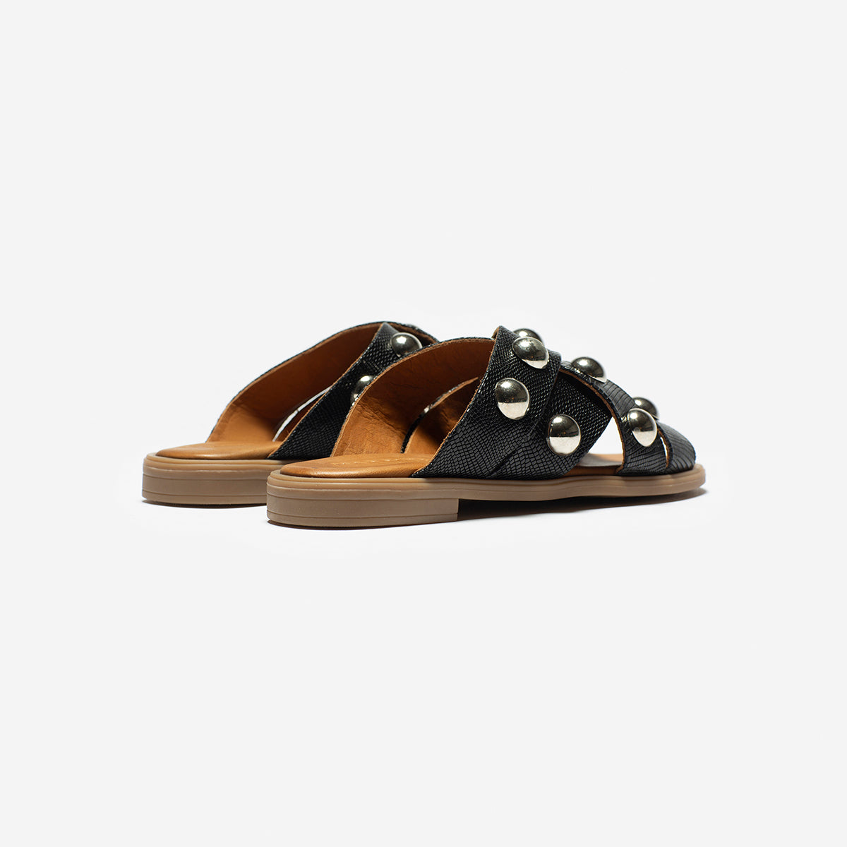 Sandalia Akira Negro, base 1 cm, interior y plantilla de cuero.