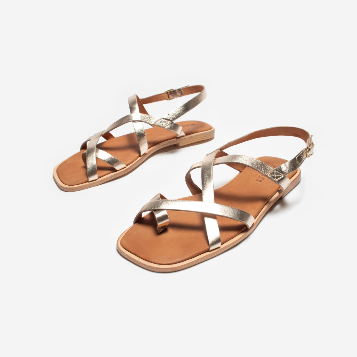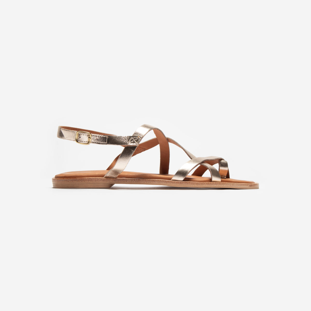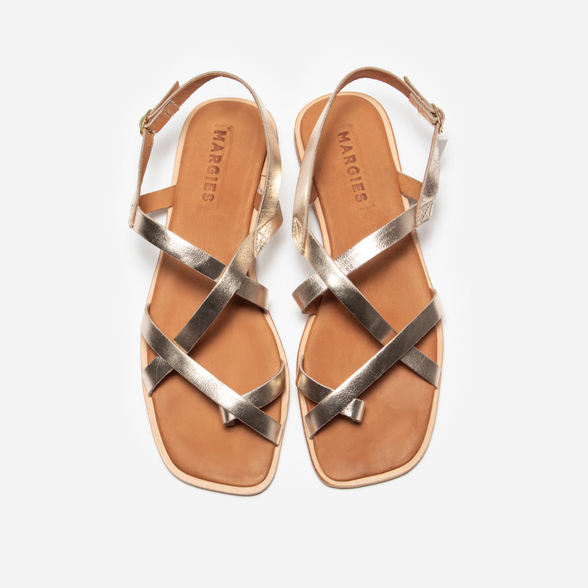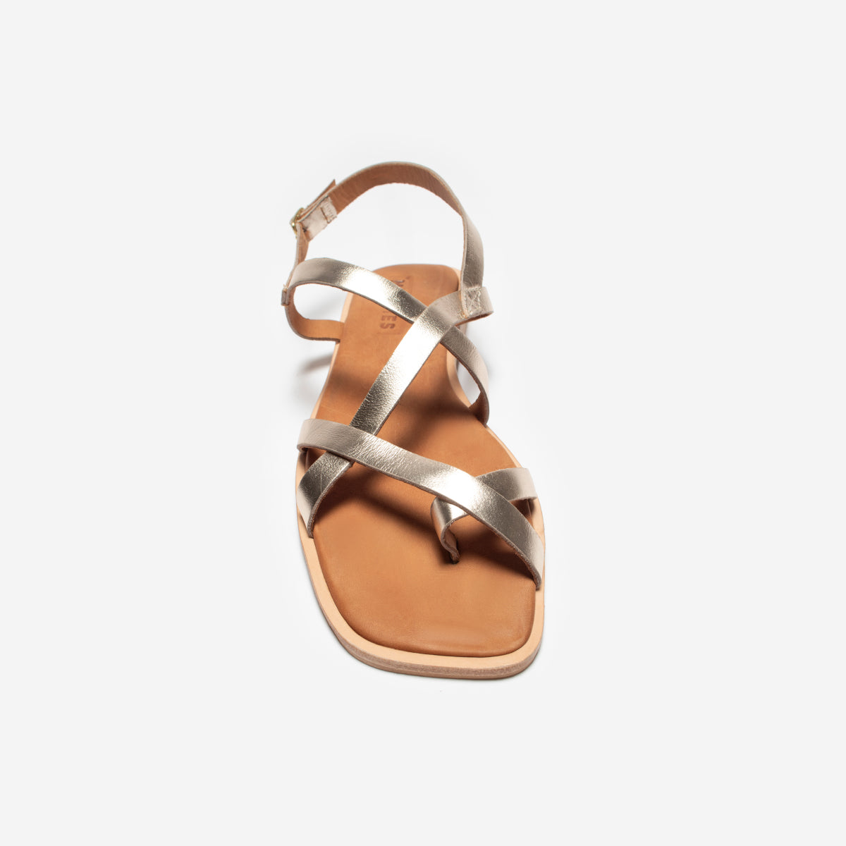 Sandalia Camila Platino, interior y plantilla de cuero.