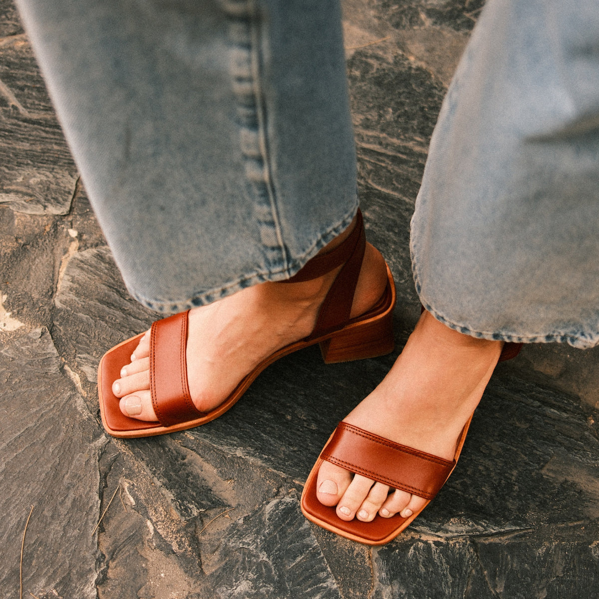Sandalia Cascais cuero suela , interior y plantilla de cuero, taco de madera de 7cm. Hebilla plateada