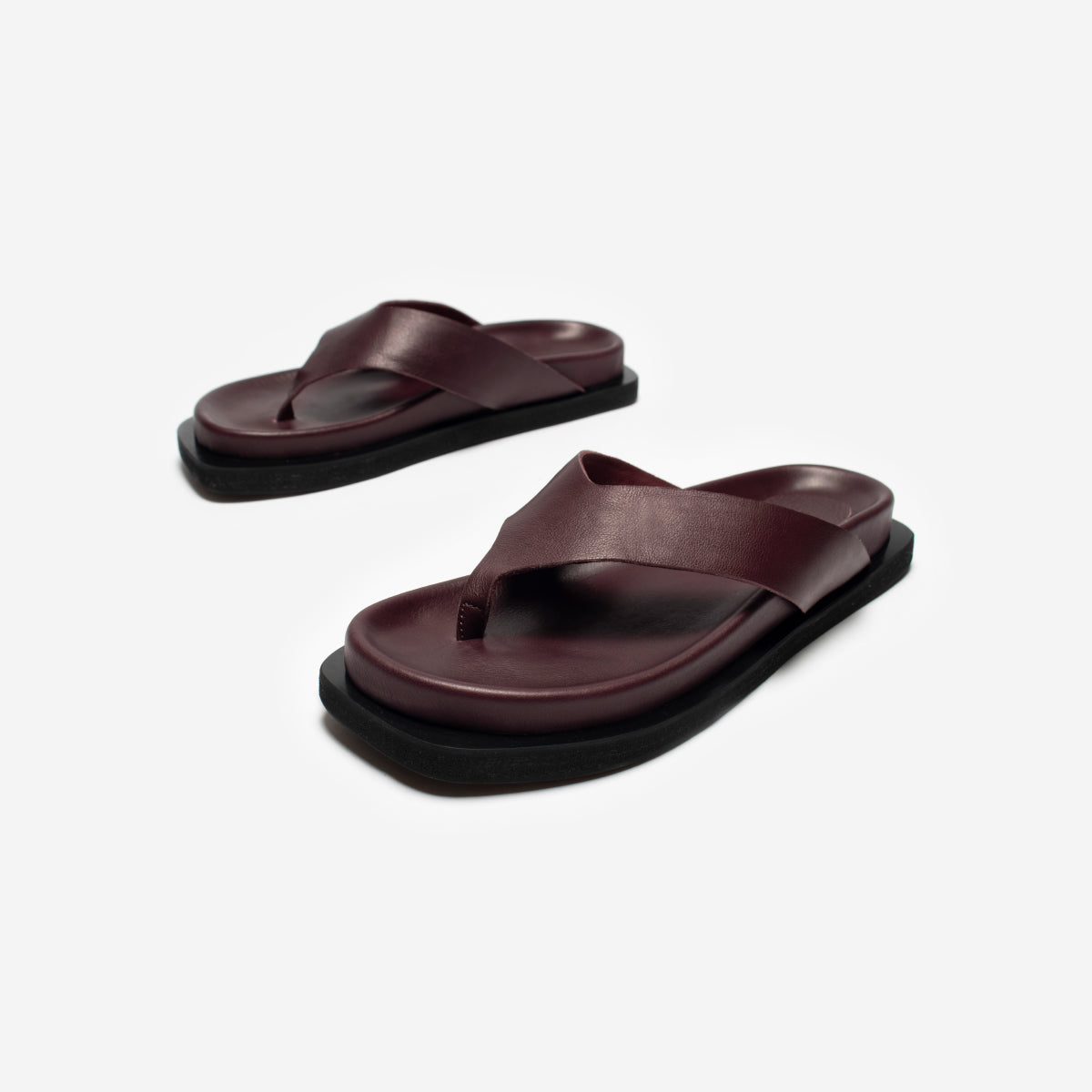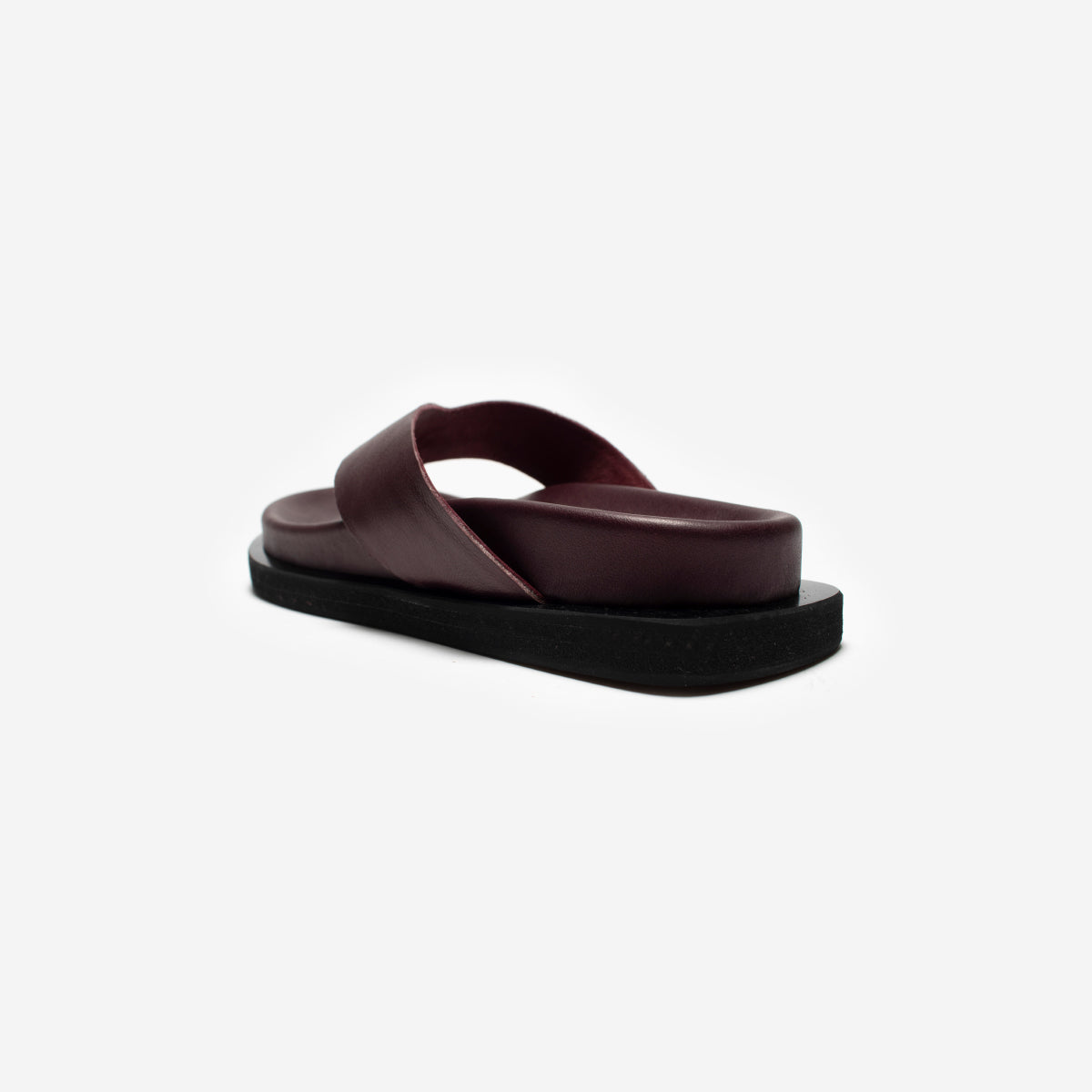 Sandalia Chiado Burgundy, interior y plantilla de cuero.