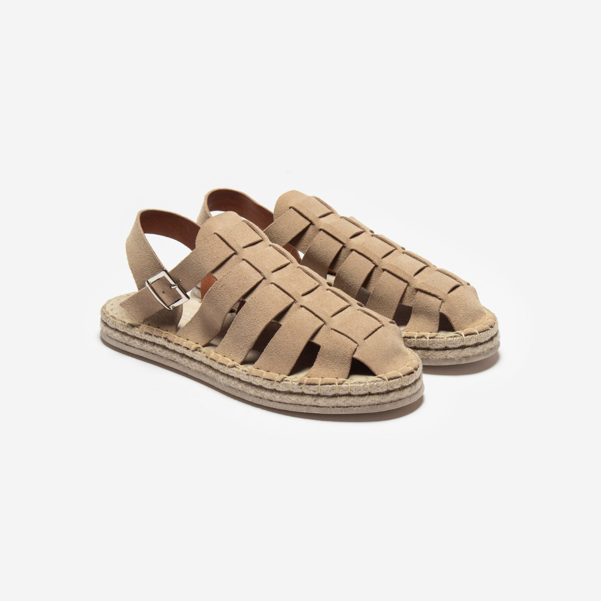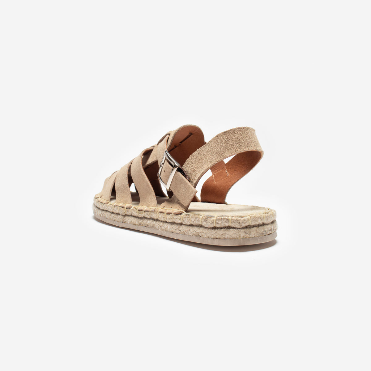 Sandalia Dion Natural, interior y plantilla de cuero. Base de 2 Cm forrada en yute.