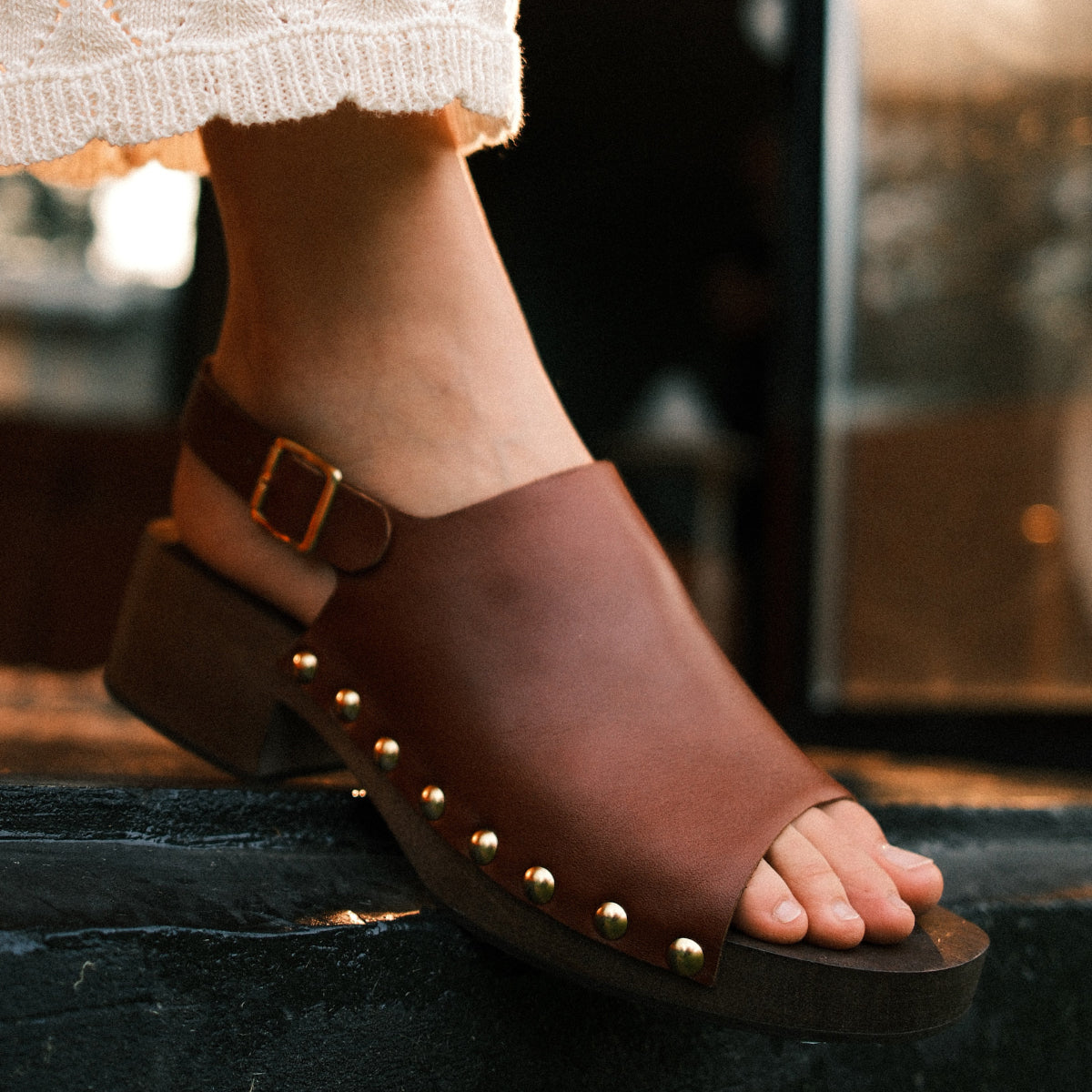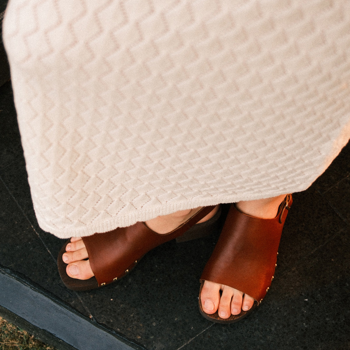 Sandalia Evora Almendra, interior y plantilla de cuero.