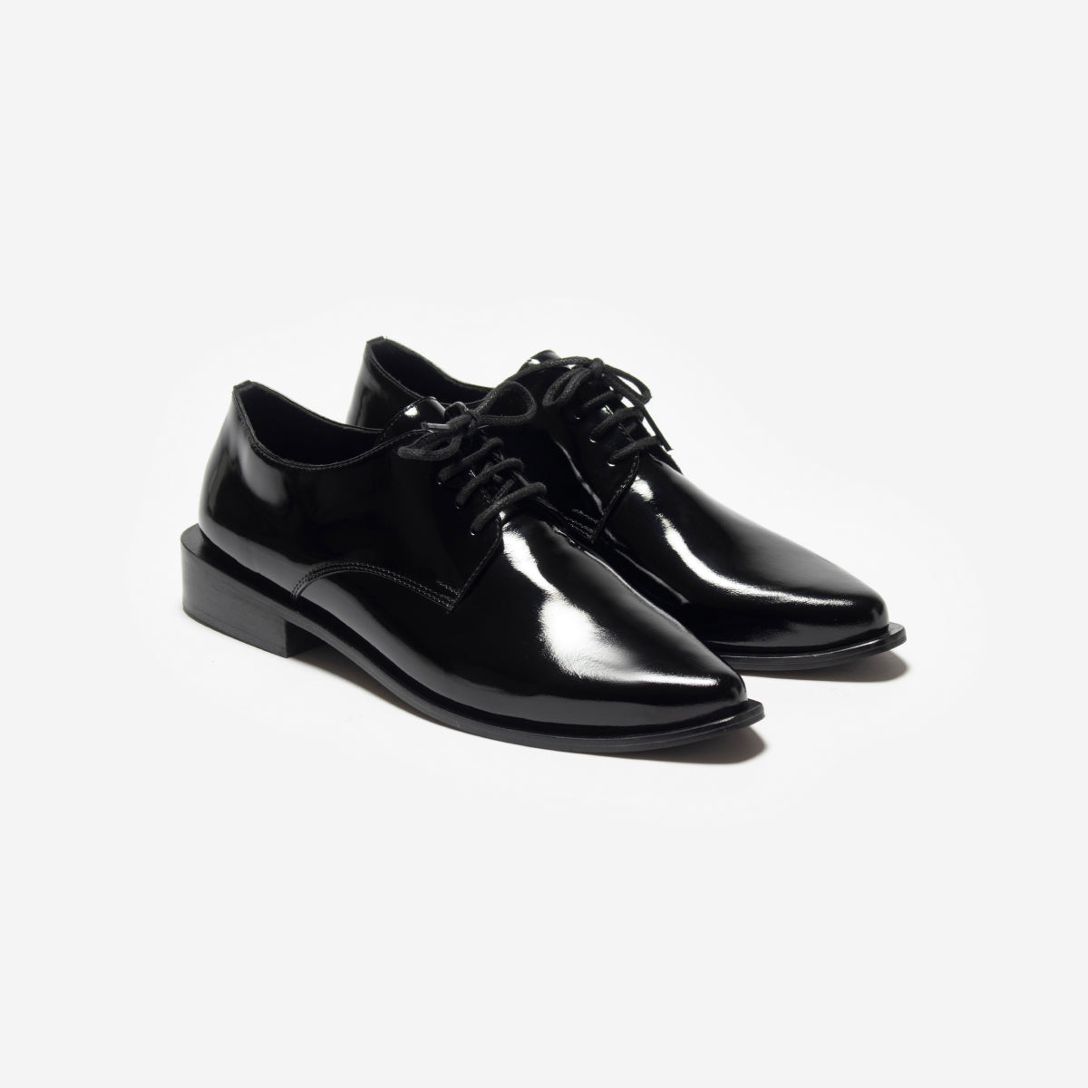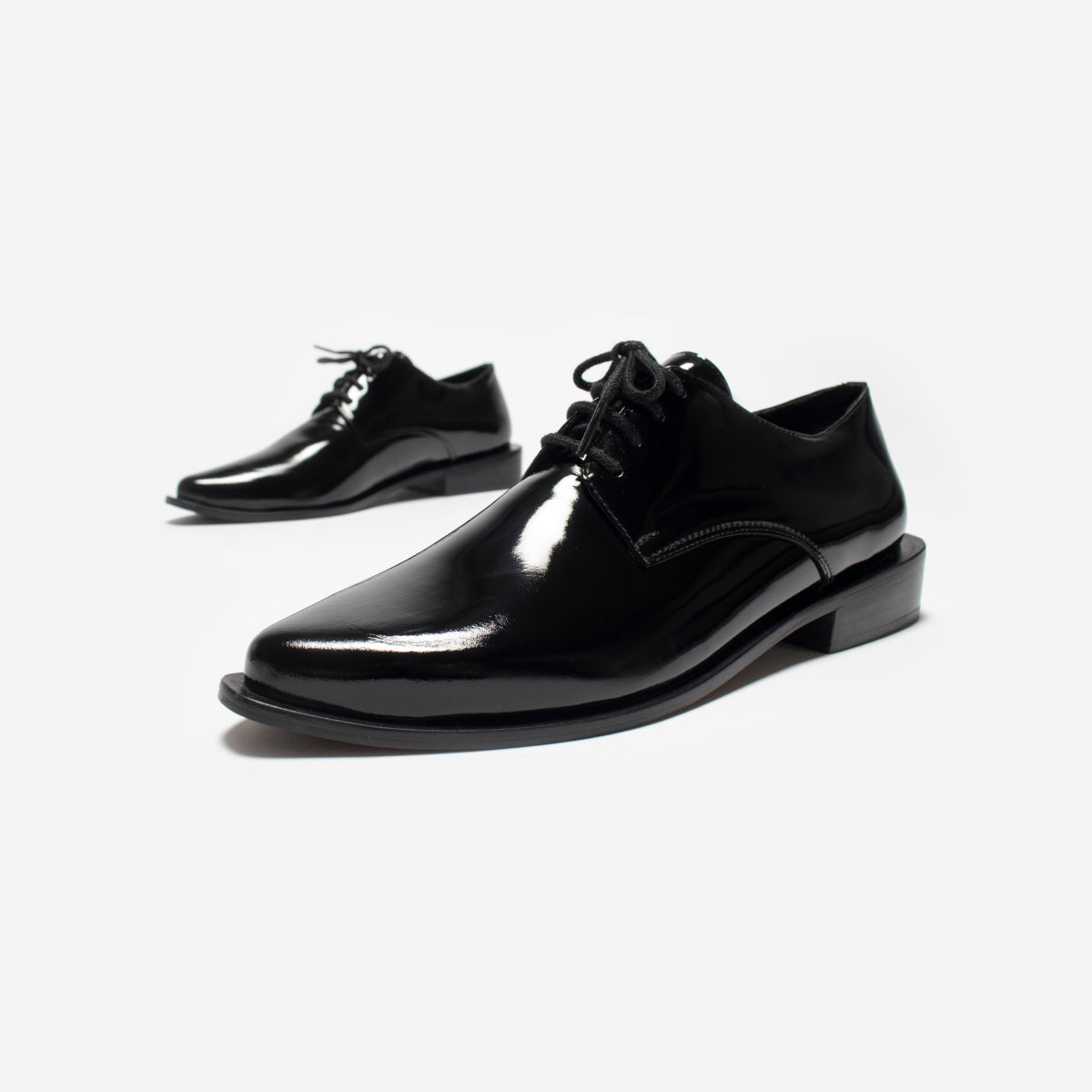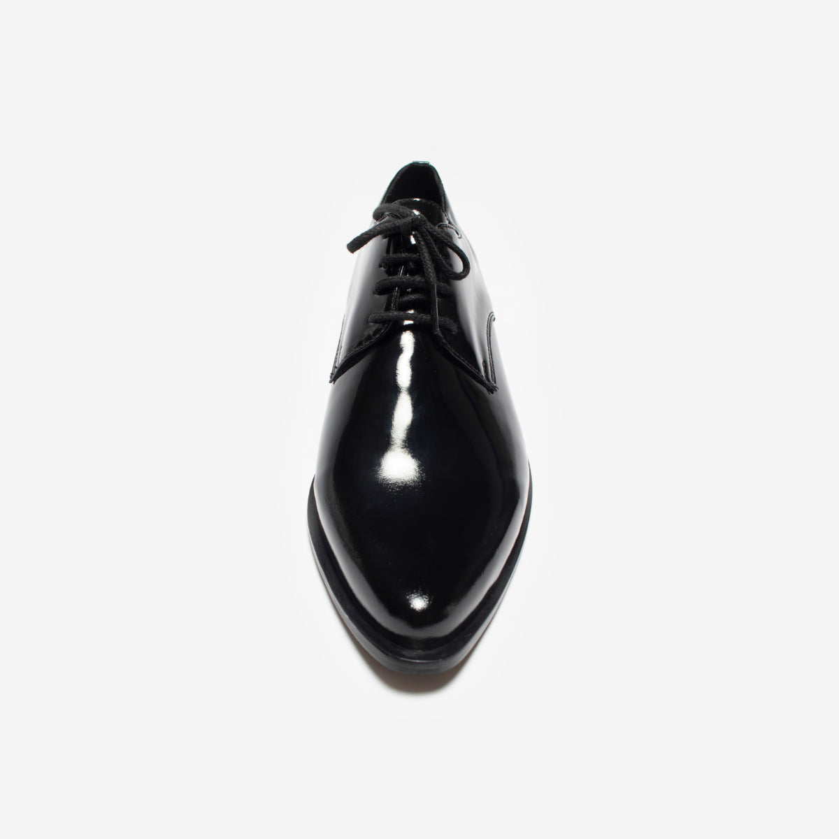 Abotinado Finn Charol Negro, interior y plantilla de cuero.