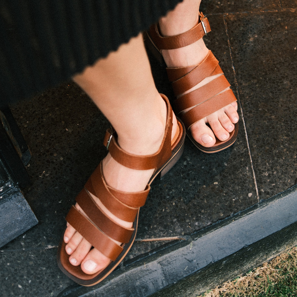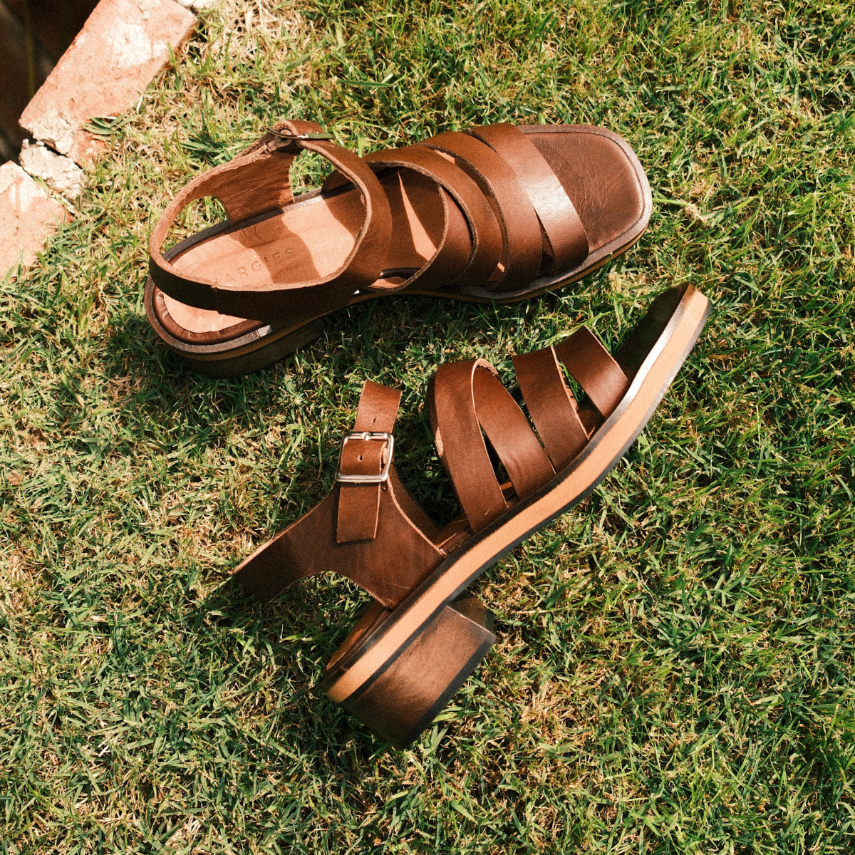 Sandalia Lagos Almendra, interior y plantilla de cuero. Taco de 4Cm.