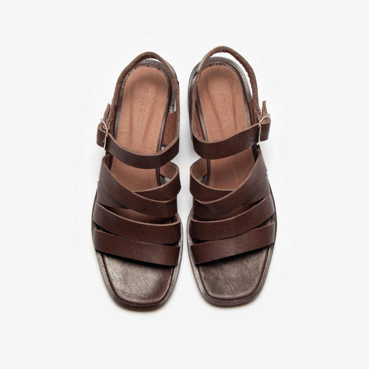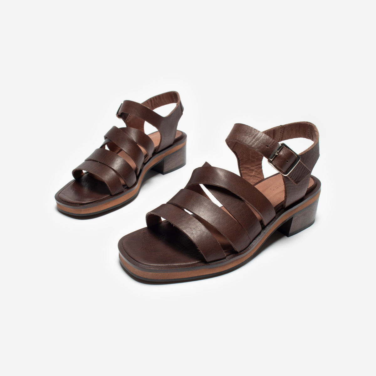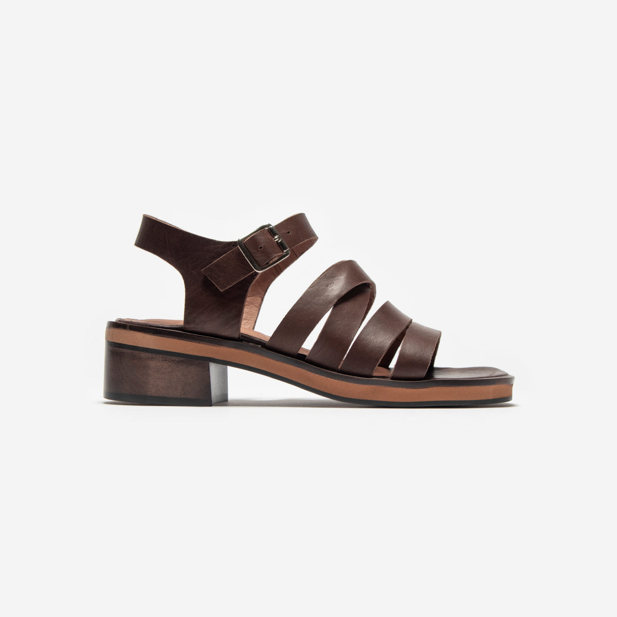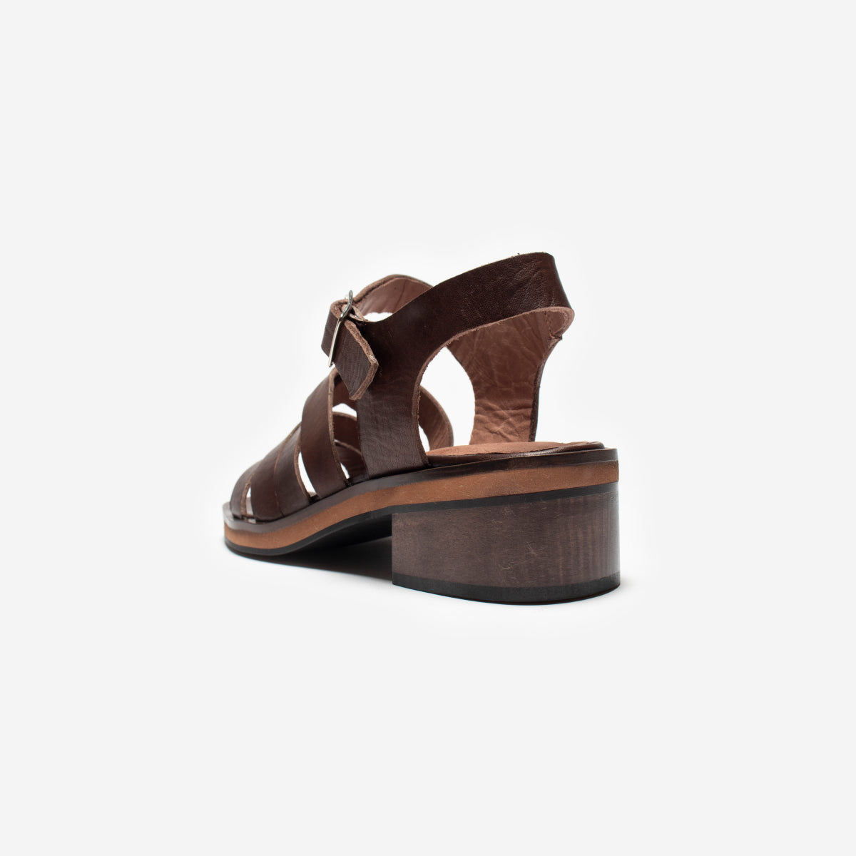 Sandalia Lagos Chocolate, interior y plantilla de cuero. Taco de 4Cm.