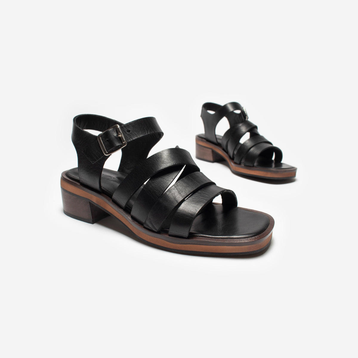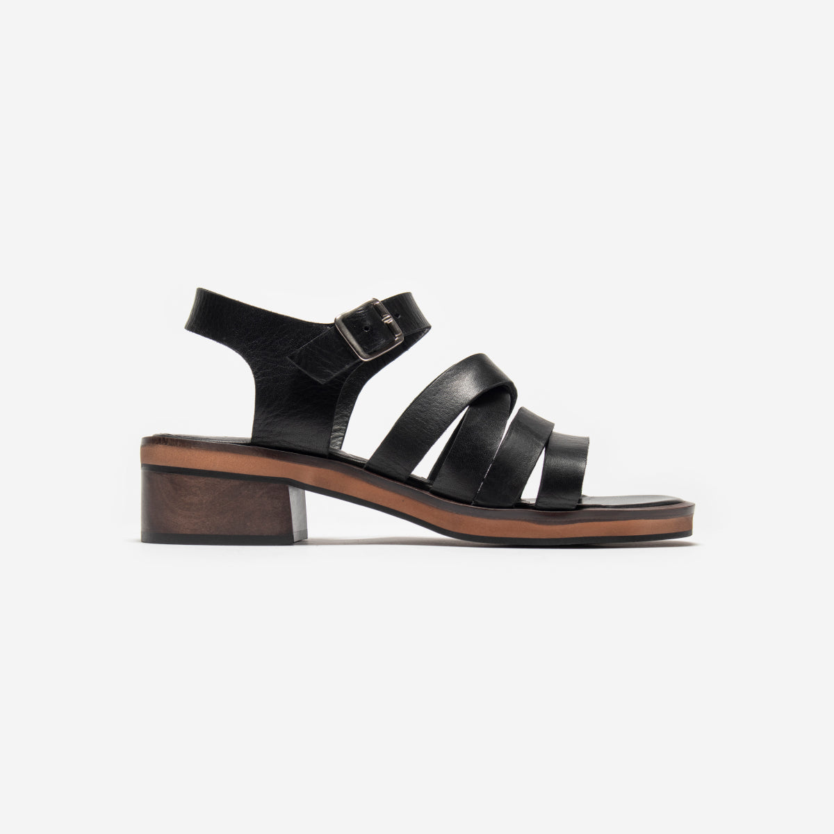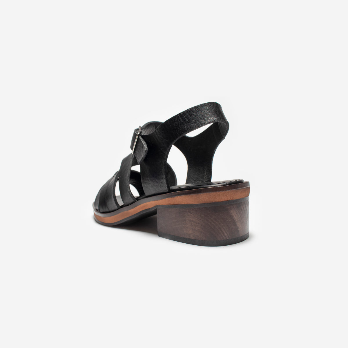 Sandalia Lagos Negro, interior y plantilla de cuero. Taco de 4Cm.