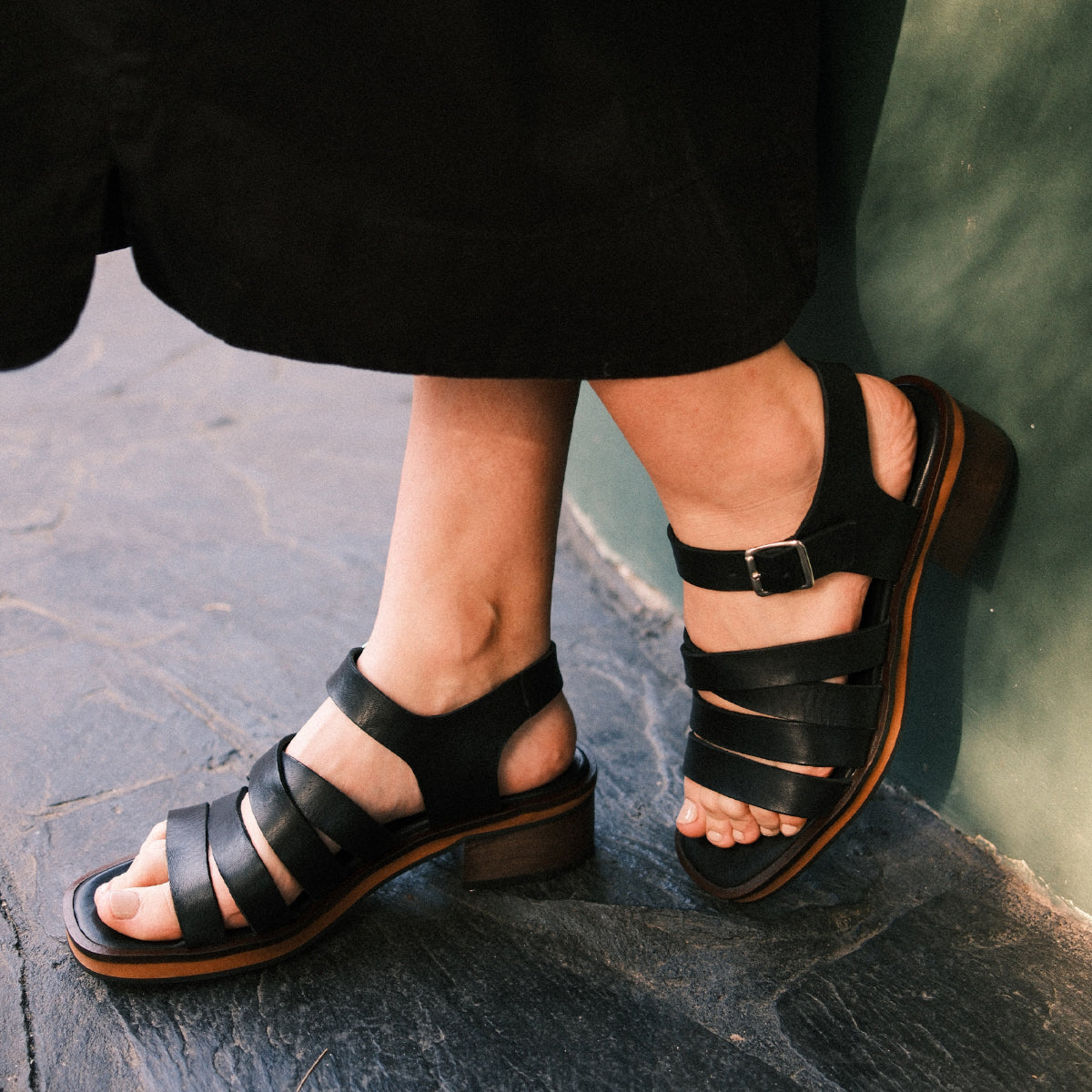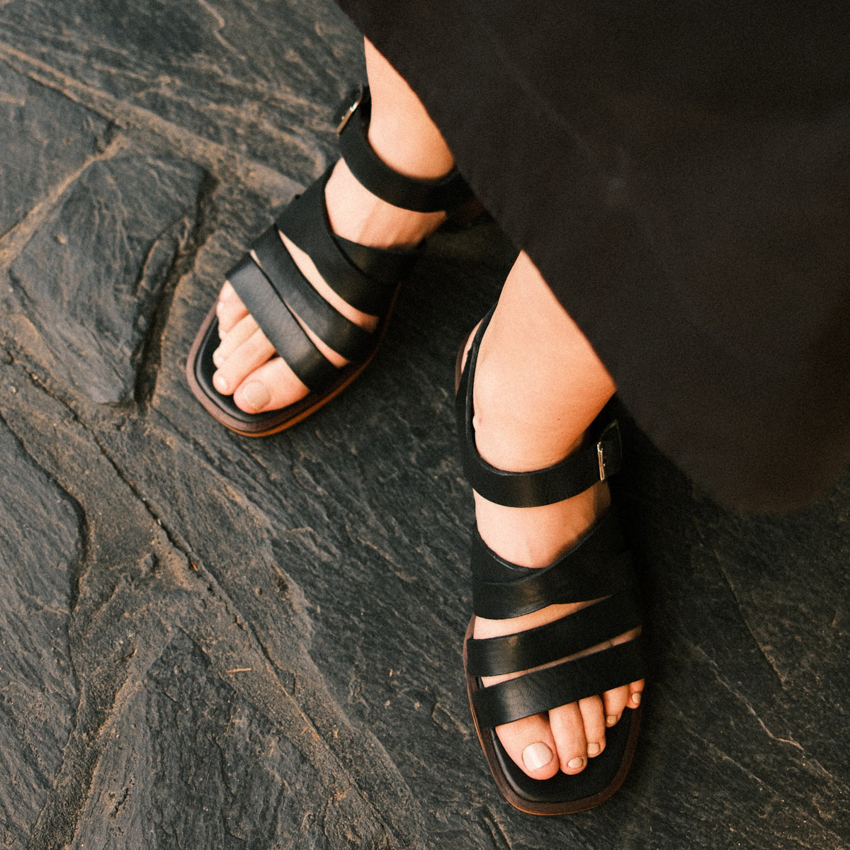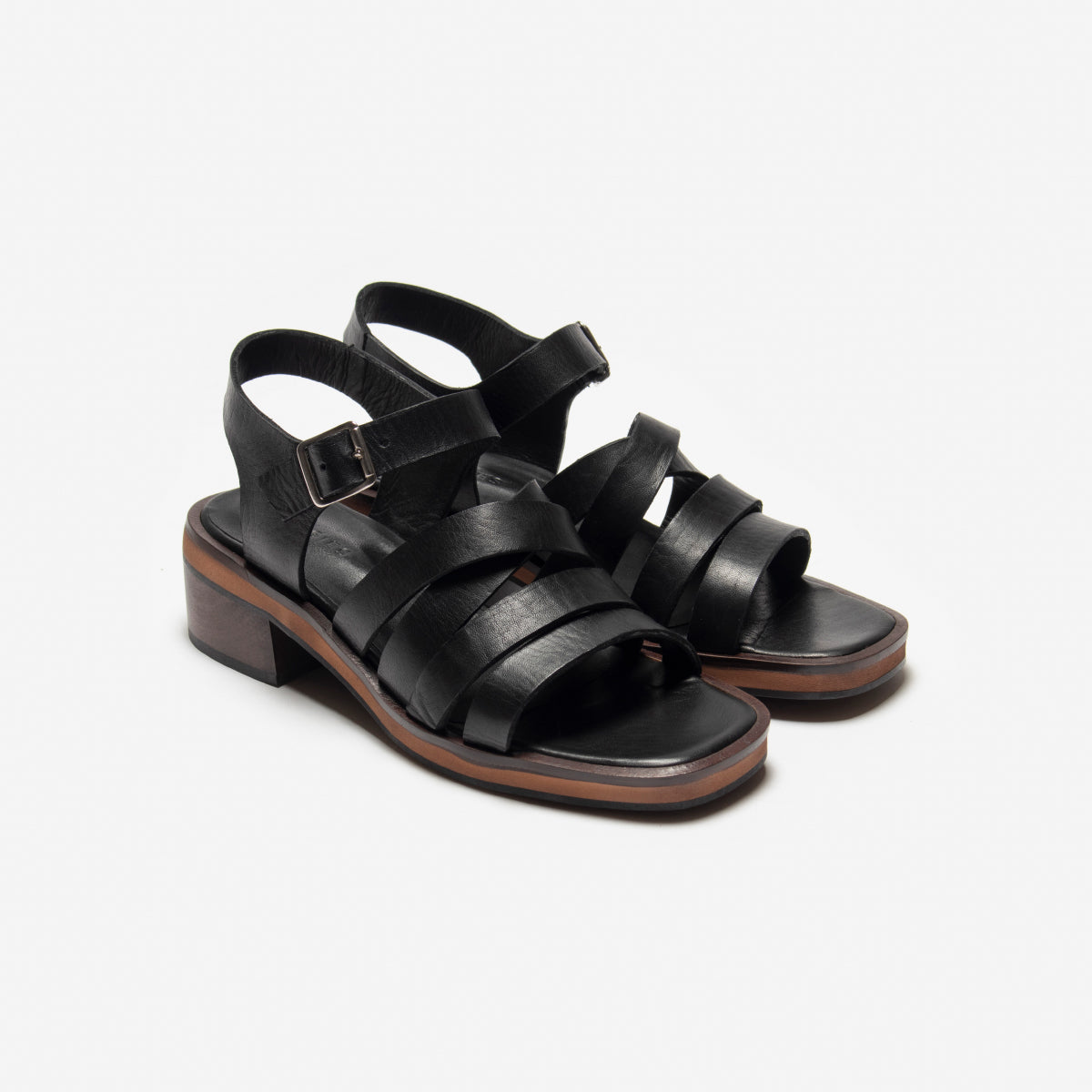 Sandalia Lagos Negro, interior y plantilla de cuero. Taco de 4Cm.