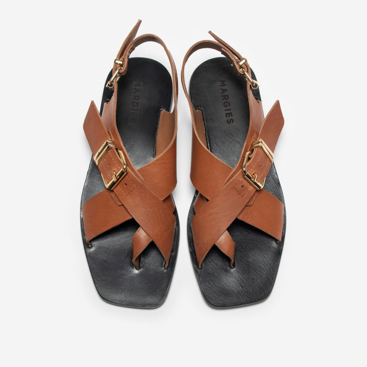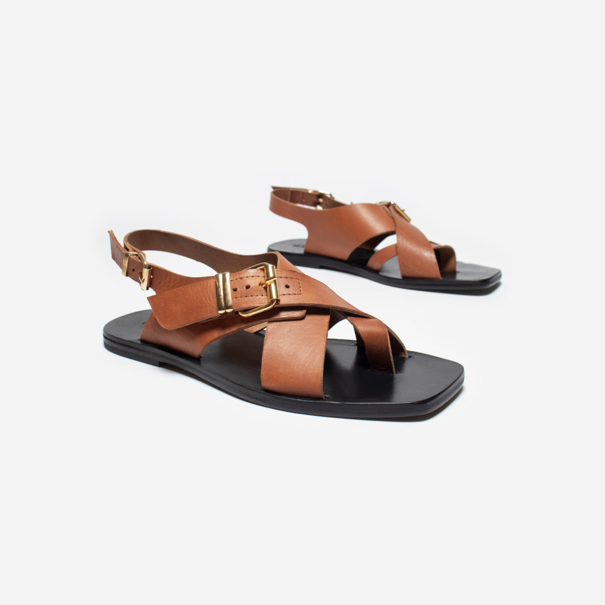 Sandalia Leira Suela, base de 1cm, interior y plantilla de cuero. Hebillas doradas.