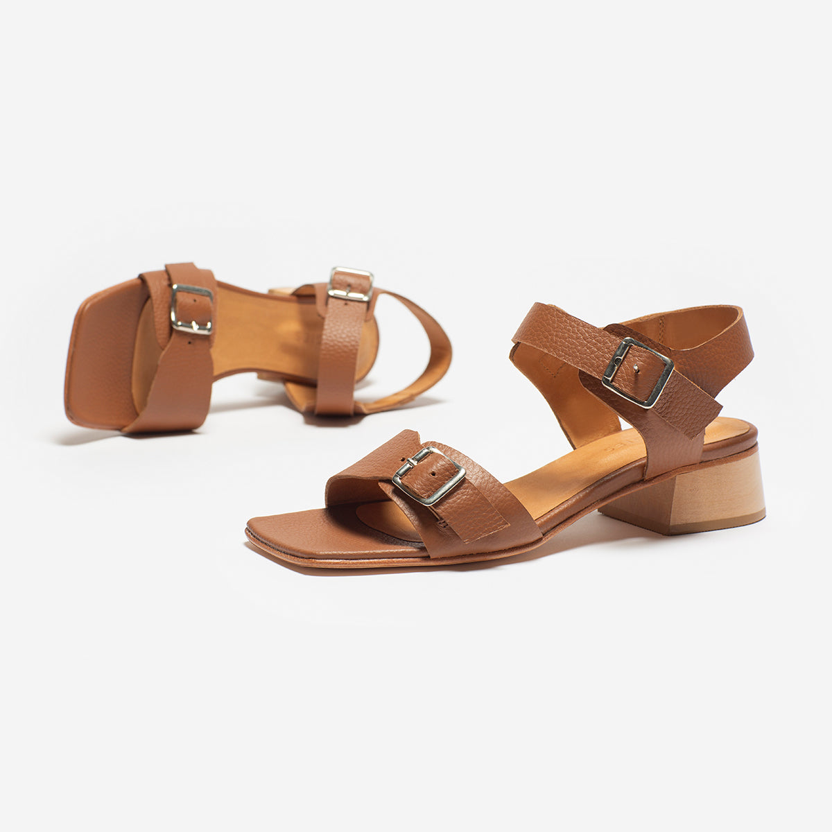 Sandalia Marvao Suela, interior y plantilla de cuero. Taco de madera de 4 cm.