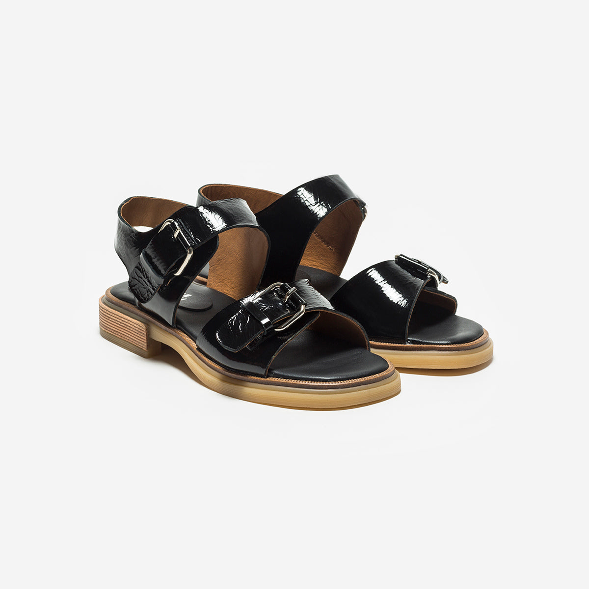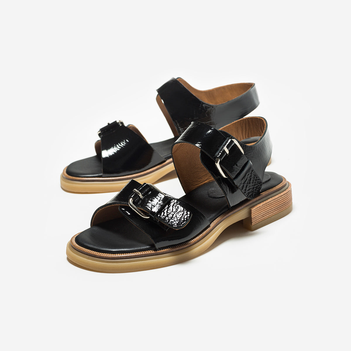 Sandalia Nashi Negro base 2 cm, interior y plantilla de cuero.