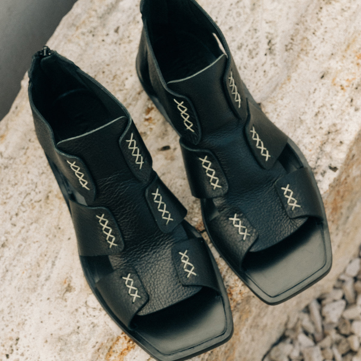 Sandalia Prana Negro, interior y plantilla de cuero.