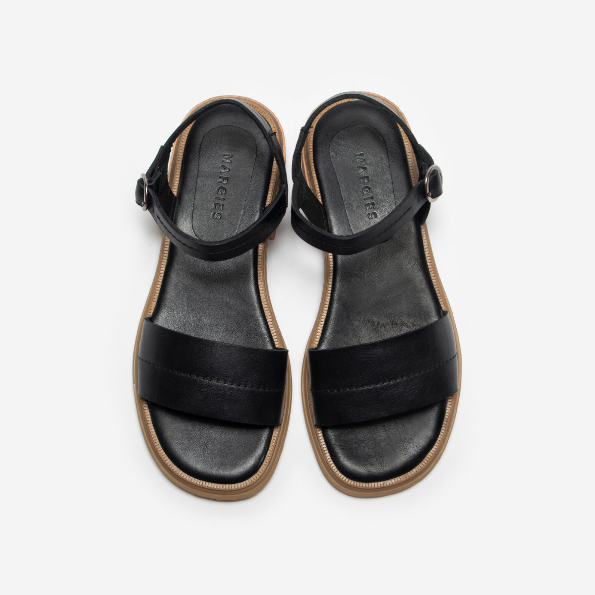 Sandalia Taiko Negro, interior y plantilla de cuero.