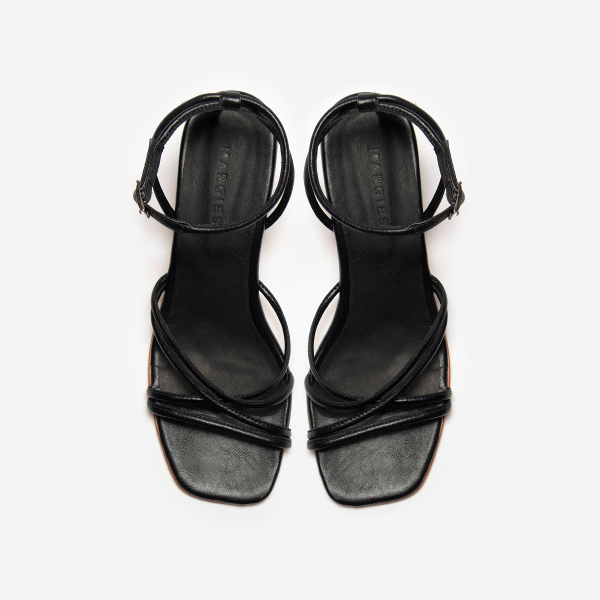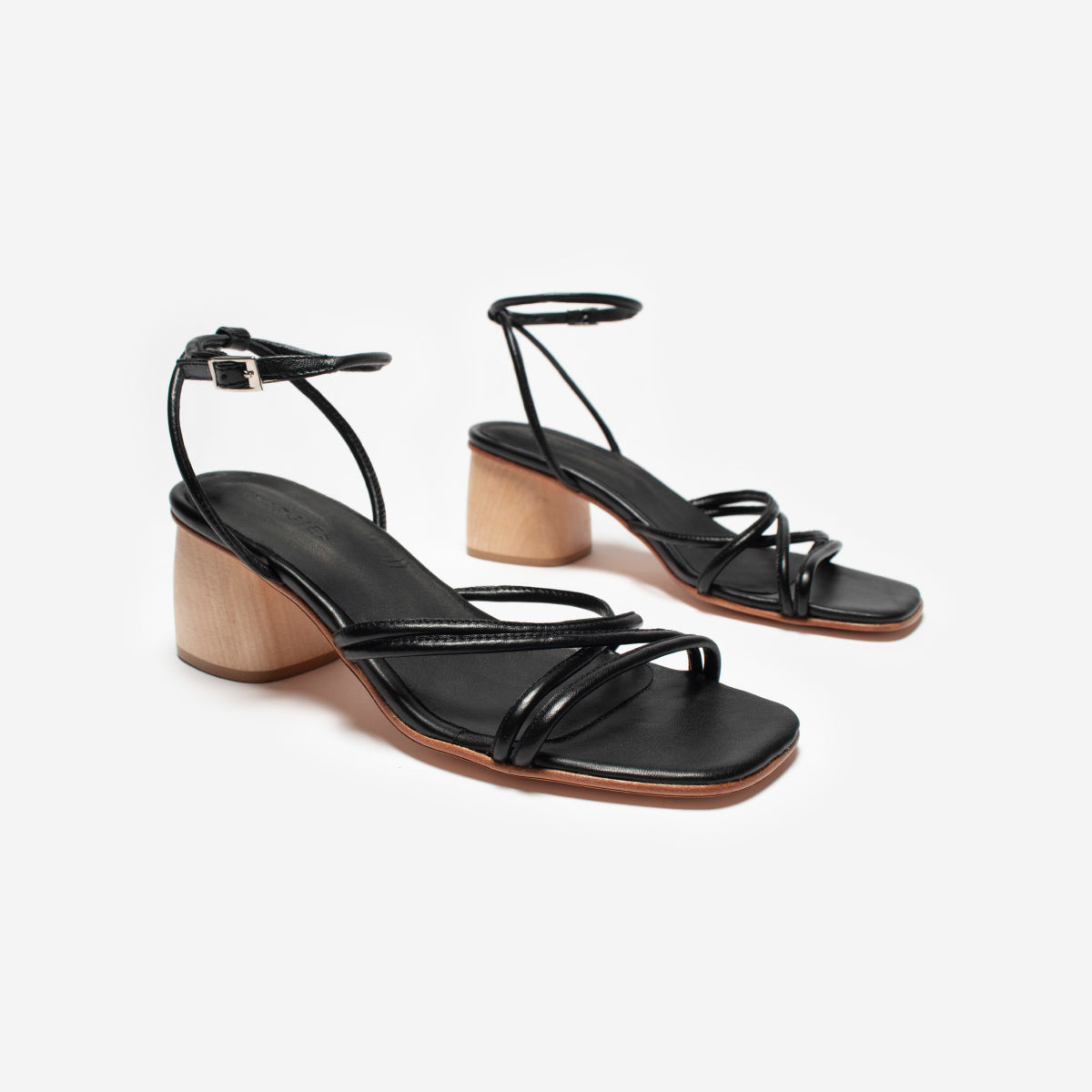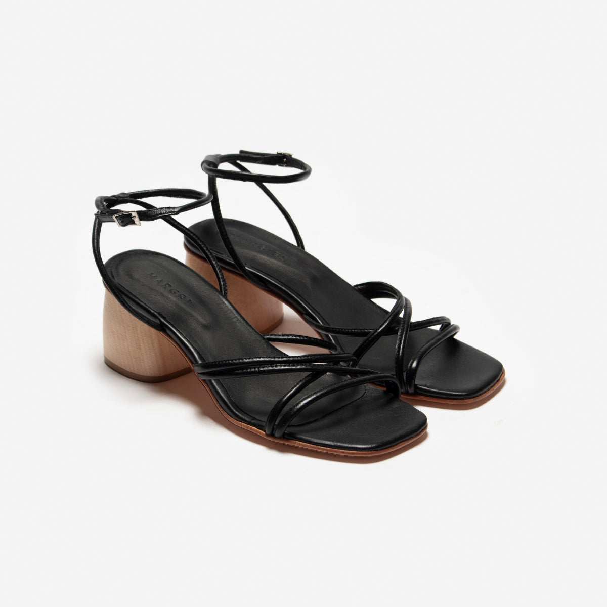 Sandalia Tavira Negro, interior y plantilla de cuero. Taco de 5,5 cm.
