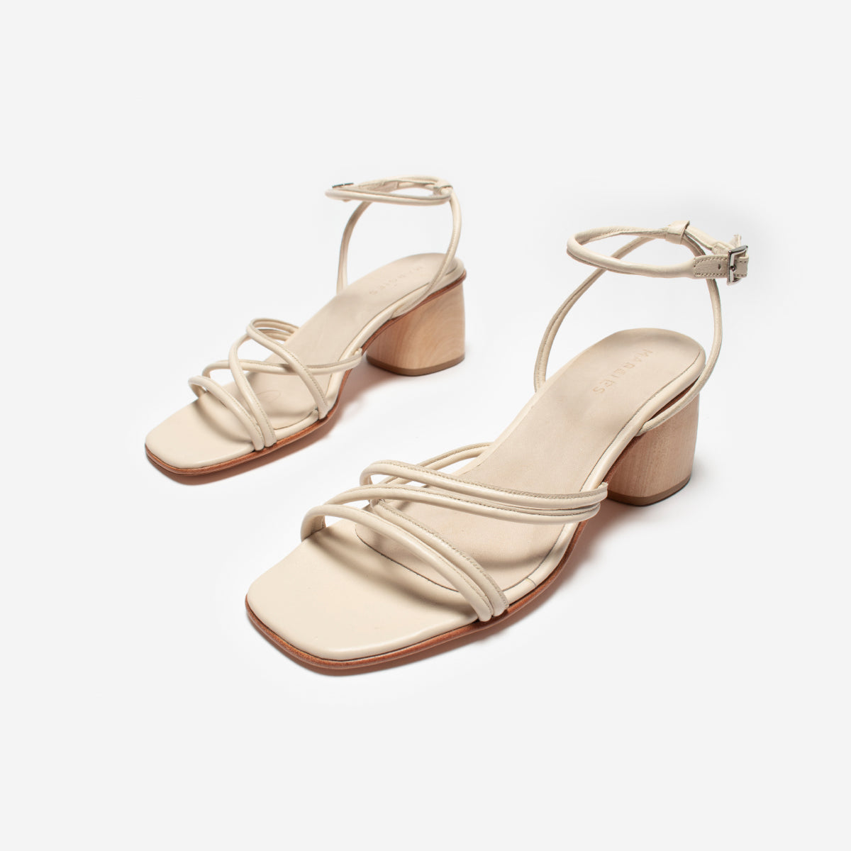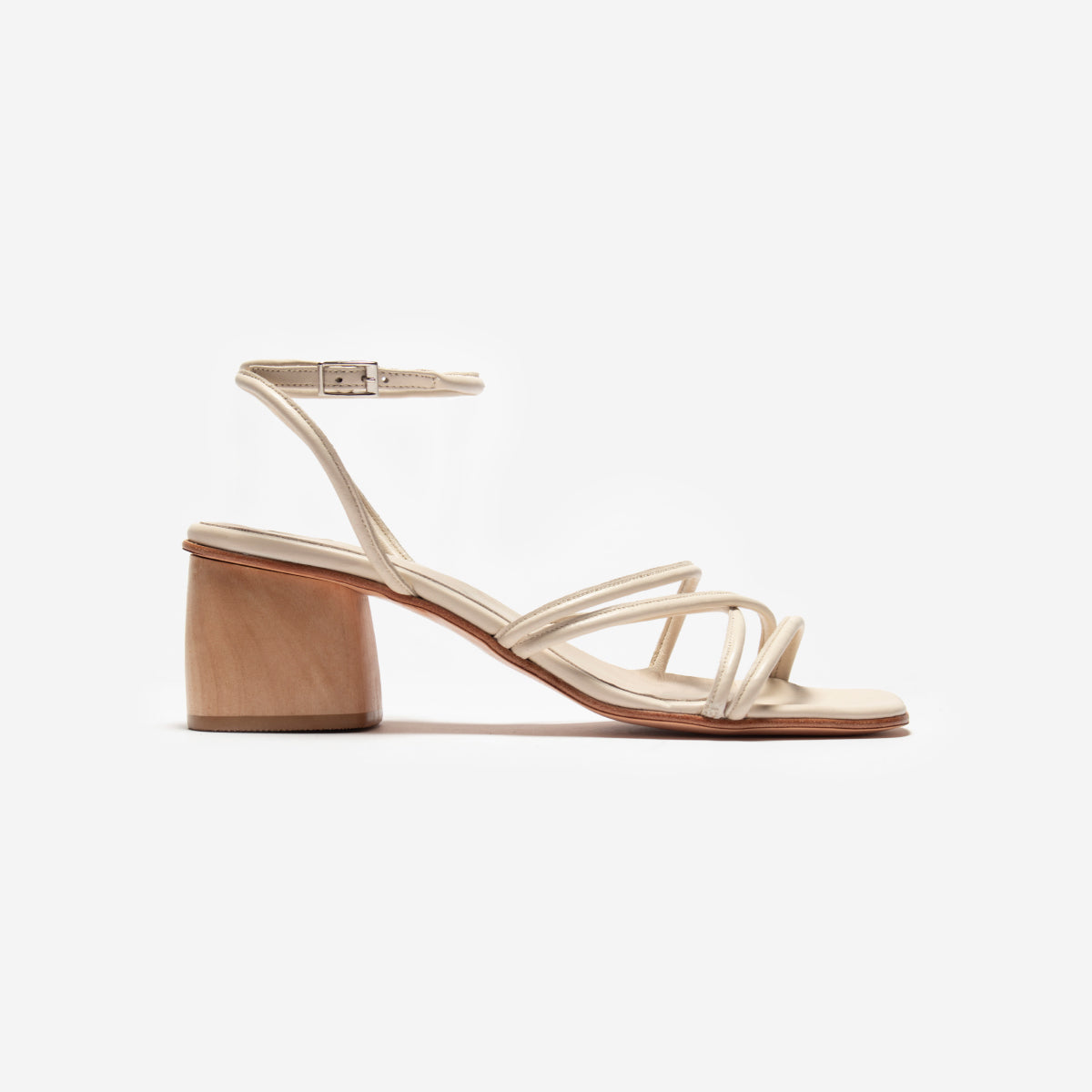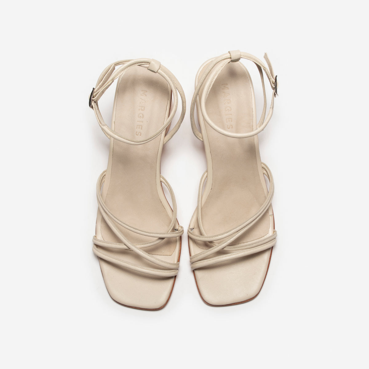 Sandalia Tavira Off White, interior y plantilla de cuero. Taco de 5,5 cm.