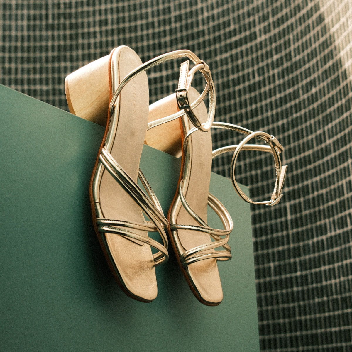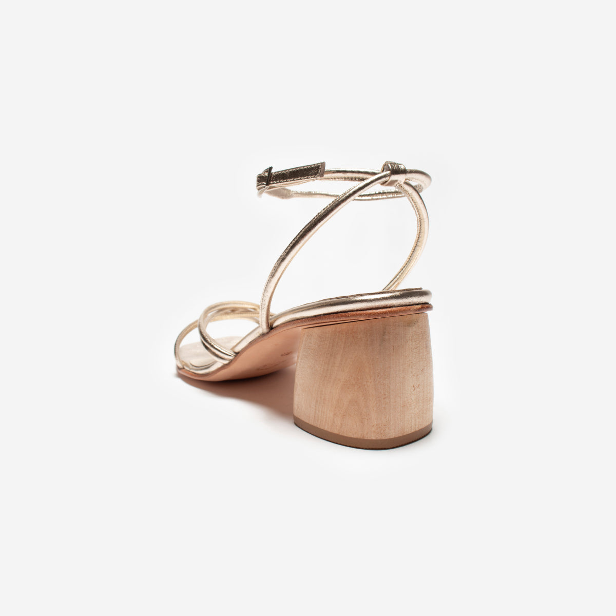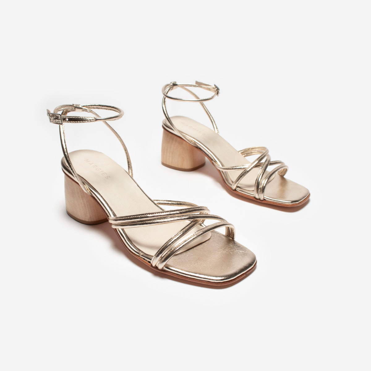 Sandalia Tavira Platino, interior y plantilla de cuero. Taco de 5,5 cm.